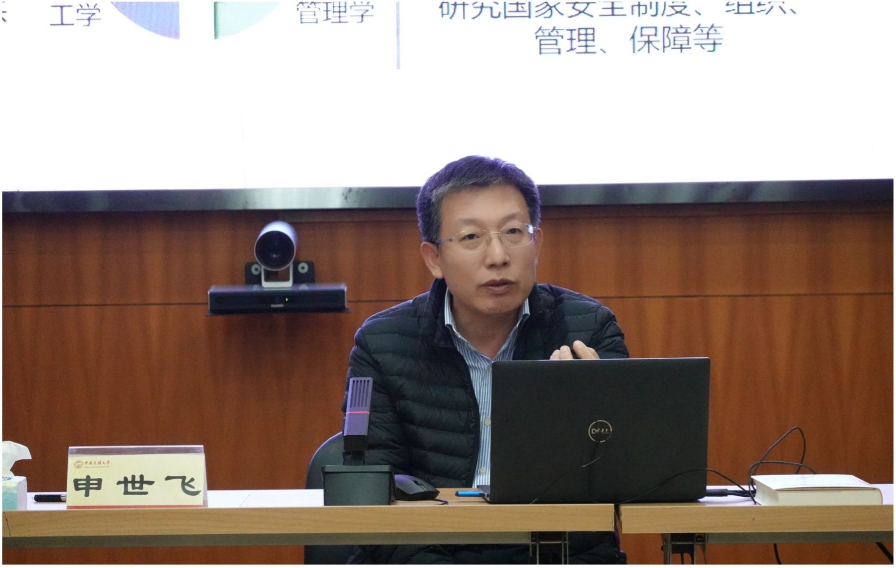 作为国家安全学学科设置论证工作组组长,申世飞教授讲述了在百年未有之大变局下设立国家安全学一级学科的背景与意义,回顾了学科设立的基本考虑和基本逻辑,以及作为贯彻服务总体国家安全观的核心支撑学科与其他的关系,也为老师和同学们解读了国家安全学人才培养输送的特点。