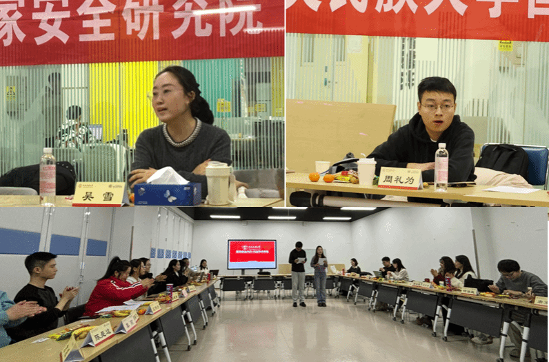 在学术分享与交流环节,与会博士生结合自身研究领域,就边疆安全、数据安全与治理、海外利益保护等方向进行了简要而深入的分享。同学们回顾并总结了本学期的研究成果、学习收获与科研心得,并在此基础上明确了下一阶段的学习目标与研究规划。围绕当前海内外国家安全领域的重大事件与热点议题,从多学科视角出发,展开了理性、专业地讨论,在观点碰撞中深化了对复杂安全议题的理解,展现了扎实的学术素养与深沉的家国情怀。